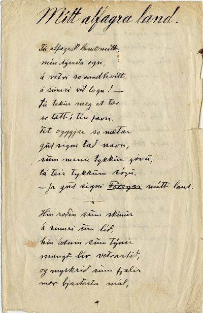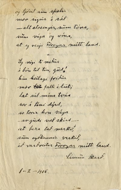 Tað var á hesum staði, at Símun á Skarði 1. februar 1906, yrkti tjóðsang okkara "Tú alfagra land mítt"