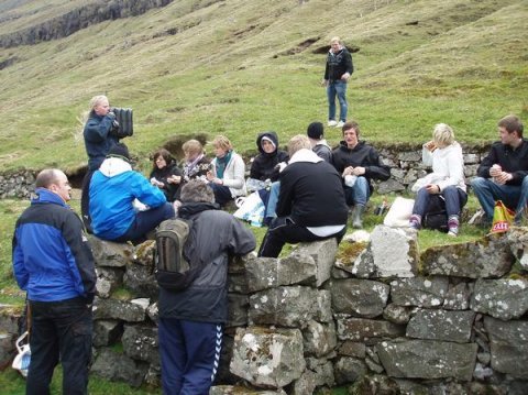 Vit njóta ein føroyskan matpakka, hoyra søguna um Háskúlan og syngja tjóðsangin.